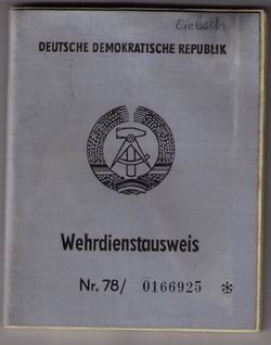 Als Grundwehrdienstleistender musste man 14 Tage bevor man eingezogen wurde seinen zivilen Personalausweis bei der Meldestelle der Volkspolizei abgeben. Man erhielt ihn erst nach Ableistung seiner Dienstzeit wieder. Den Wehrdienstausweis erhielt man kurz nach der Musterung und behielt ihn mindestens solange man im "wehrfähigen" Alter war, da man im Zuge einer Mobilmachung jederzeit binnen 24h zum Dienst eingezogen werden konnte. Clevererweise verschickte das Wehrkreiskommando die Telegramme zur Einberufung zum Reservistendienst (Mobilmachungsübungen) zumeist direkt an die Arbeitsstelle. So konnte man kaum noch mit Ausreden oder einer schnellen Krankschreibung tricksen. Oft übernahm sogar der Betrieb die schnelle "Verbringung" zum Gestellungsort. Mit zunehmenden Alter konnte so eine Übung mit Feldlager und anderen "Einlagen" sehr beschwerlich werden. Gerade Spezialisten waren oft übel dran, weil sie bei jeder größeren Übung fast jährlich bis zu 2 Wochen eingezogen wurden. Ich selbst kenne Unteroffiziersreservisten die nach Ableistung ihrer 3jährigen Dienstzeit mit 21 Jahren nochmal bis zu ihrem 35.Geburtstag auf ein halbes Jahr zusammengenommener Reservistendienstzeit gekommen sind.
